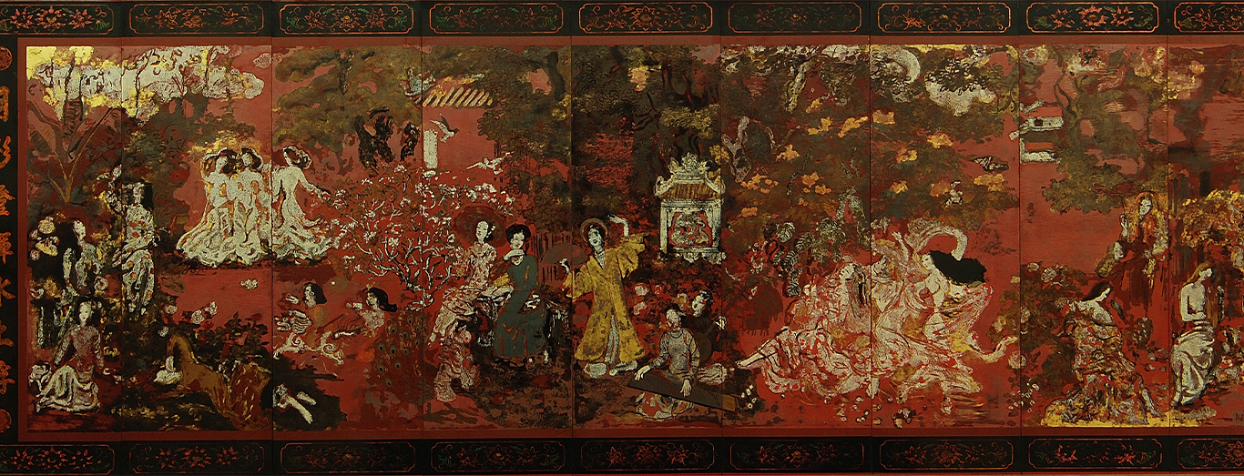 Lacquer is not the same as paint. It begins with wood, strengthened by layers of cloth and clay. Each coat is brushed on by hand, left to rest, then sanded away before another is added. Layer after layer, the surface grows smooth as water.
