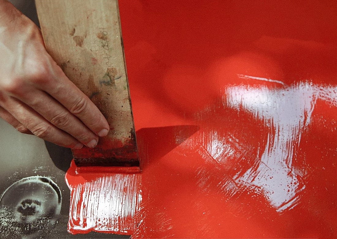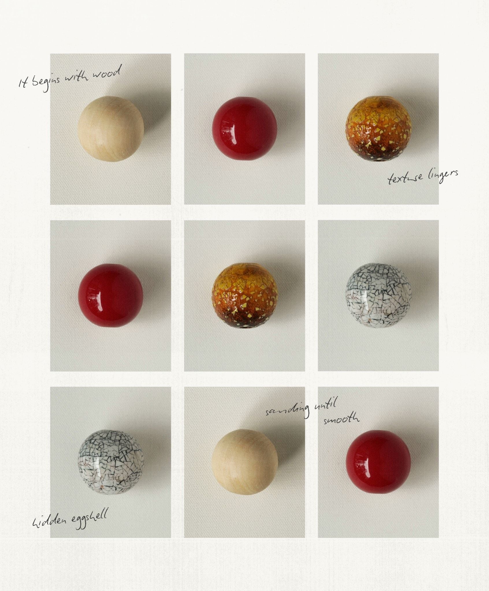 Sanding is the heart of the process. It is what brings out the depth, cutting into the surface so the next layer can rest on it, and slowly revealing the hidden textures of color and eggshell beneath. The cycle of applying, drying, sanding, and reapplying is repeated many times, until the final surface is polished.