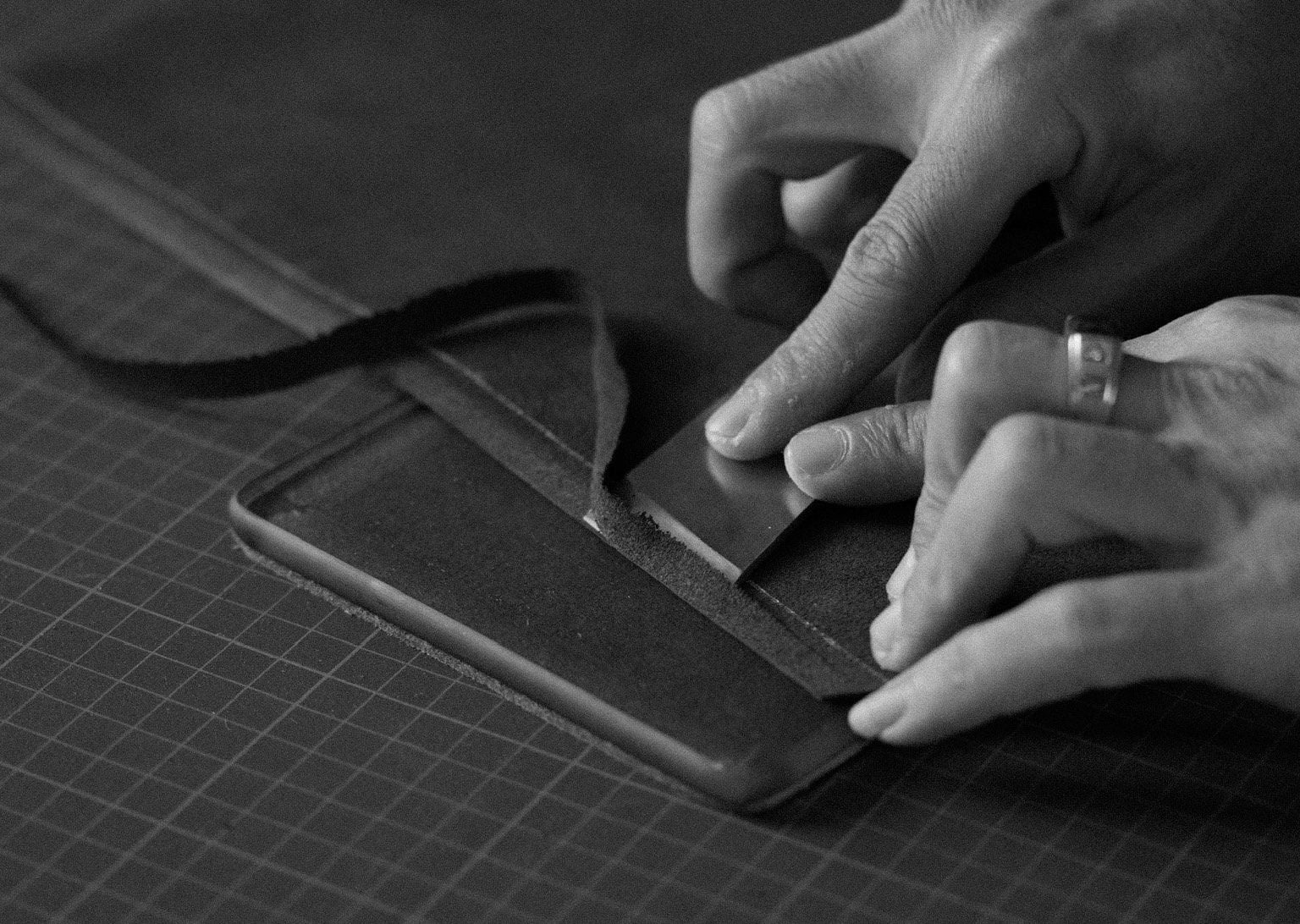 Between the spirit of lacquer in Nguyễn Gia Trí’s paintings as carried into Hoàng’s collection, and the patience of leatherwork in ours, between tradition and the present, and between Vietnam and the wider world lies this small object in your hand, carrying with it the quiet weight of time. Each layer is shaped with patience, each surface touched and sanded until it feels right.